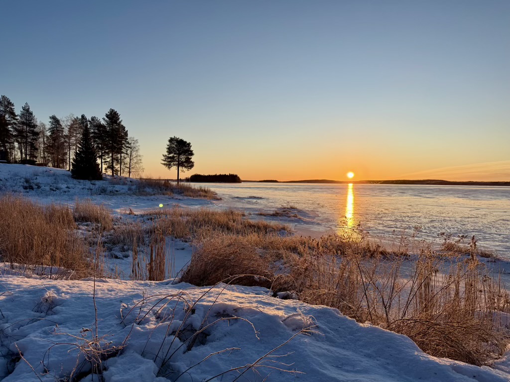 Långstranden bjuder på isande kyla med -28 grader, men solen visar sig och påminner om att sommaren snart återvänder.